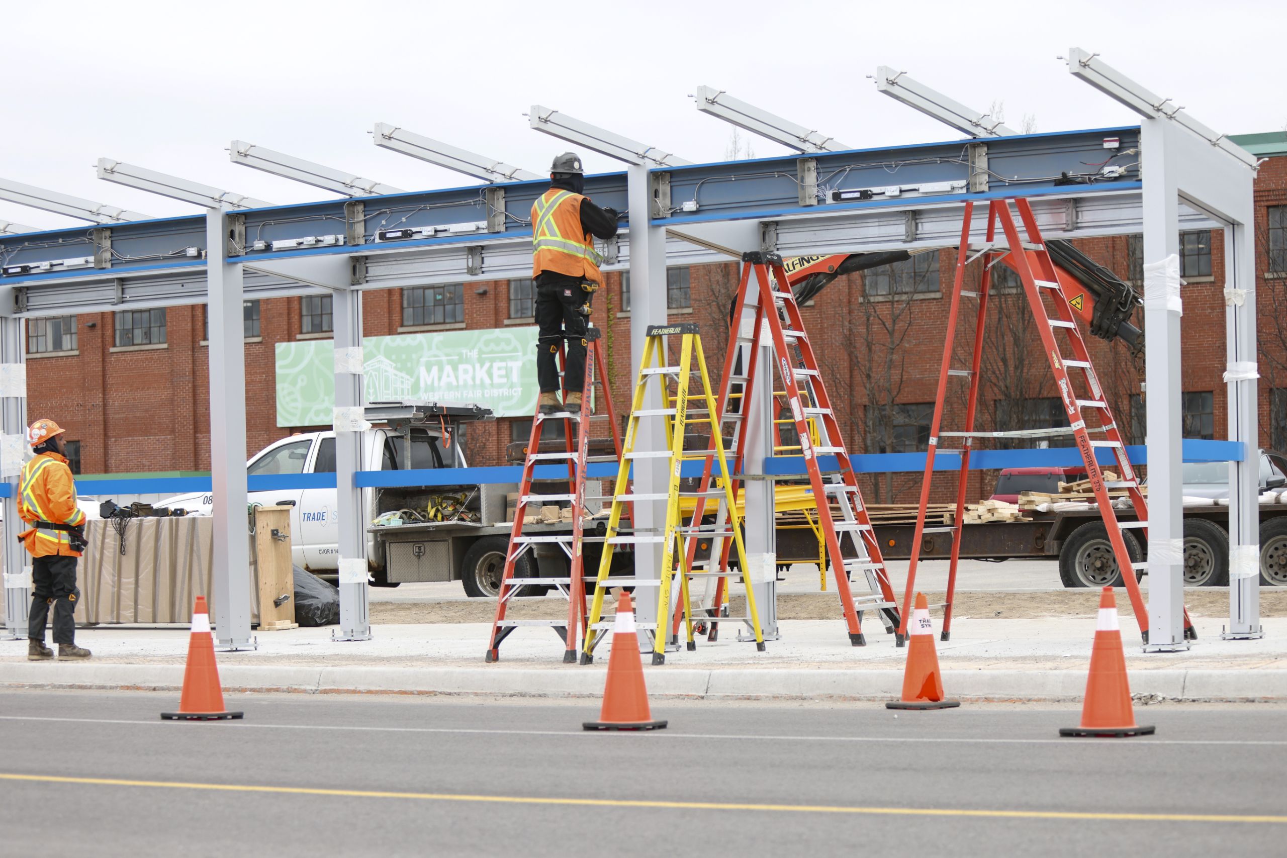 Above: A photo of the installation of the first rapid transit shelter at Ontario Street and King Street.