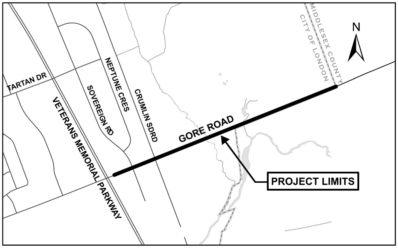 The City of London is planning to rehabilitate Gore Road in 2026 to improve the road pavement condition.