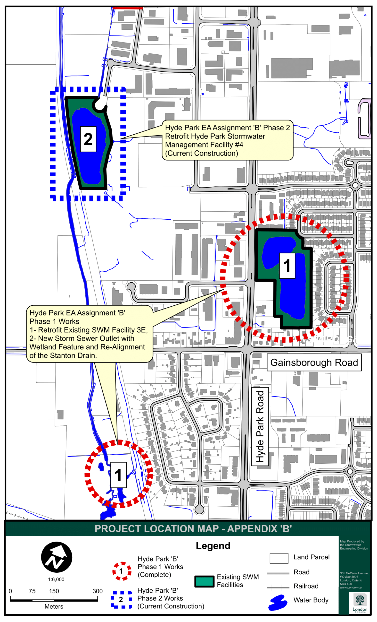 The Phase 1 of Hyde Park SWM Works Assignment B, which included retrofitting existing SWM Facility 3E, New Storm Sewer Outlet with Wetland Feature and Re-Alignment of the Staton Drain works was completed December of 2023. The Phase 2 construction is expected to start July 2025.