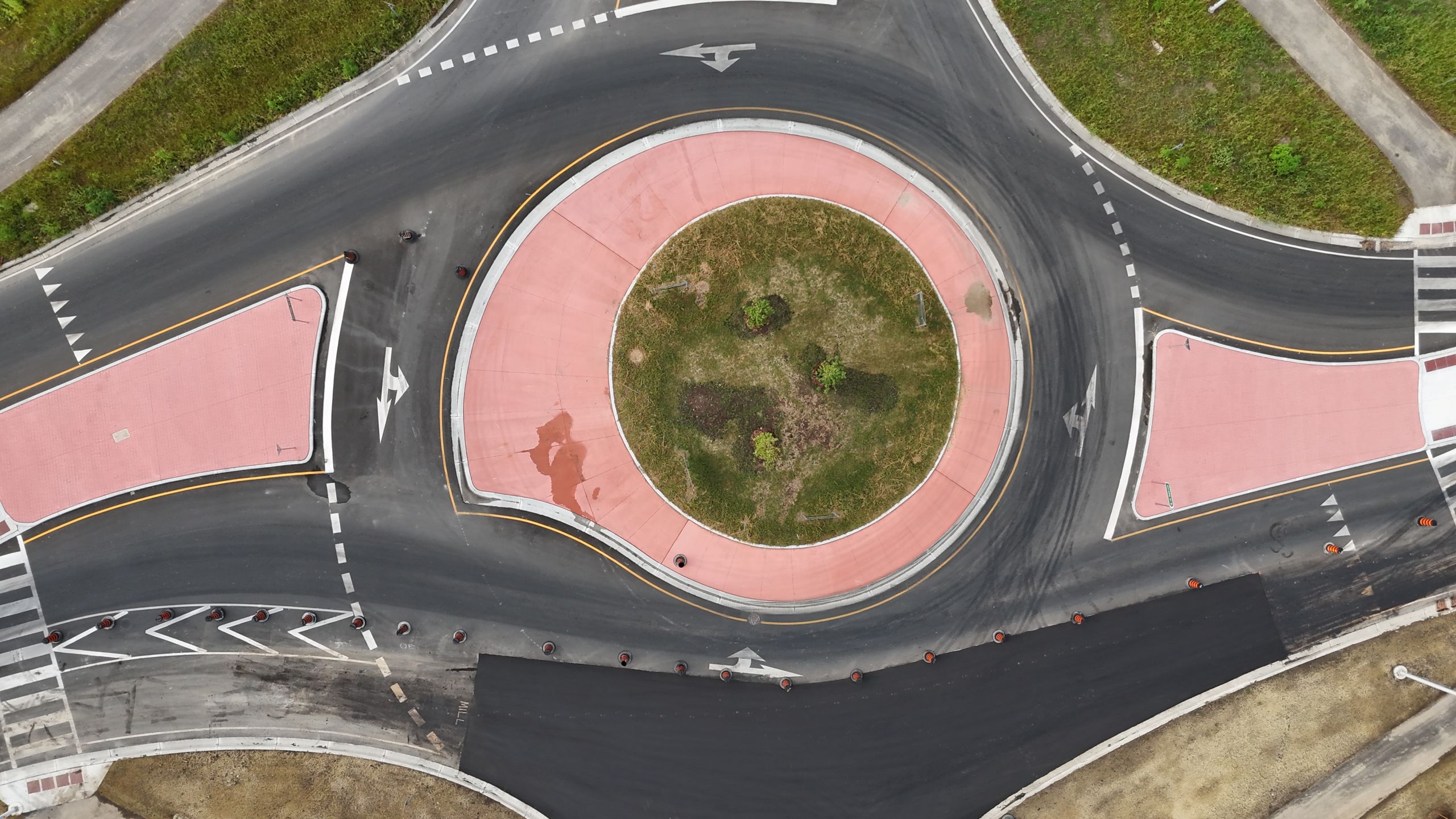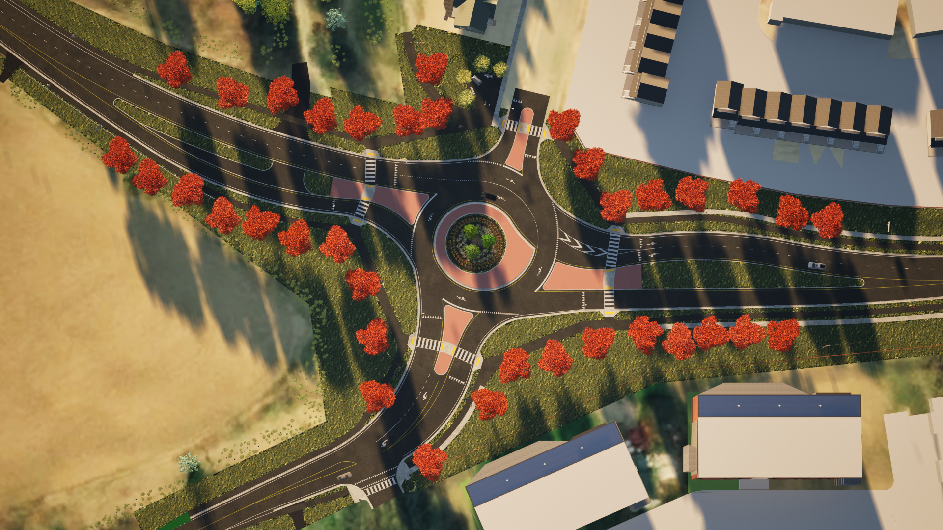Above: Bird’s-eye view of the Oxford Street and Gideon Drive roundabout, now open to traffic.