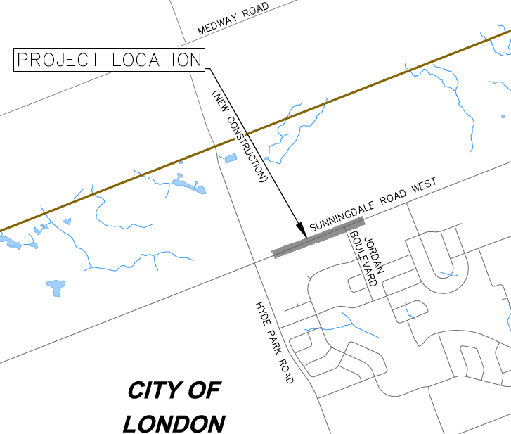 The City of London is planning to reconstruct Sunningdale Road West between Hyde Park Road and Jordan Boulevard this year to upgrade this road to a two-lane urbanized cross-section.