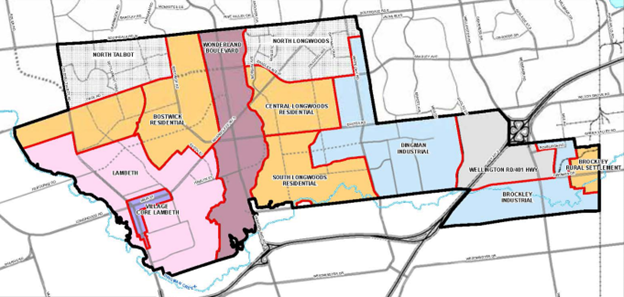 The area is divided into 13 neighbourhoods, each with its own unique characteristics. The SWAP was approved by City Council in November 2012, but it was appealed to the Ontario Municipal Board. The plan was fully adopted and put into effect on April 29, 2014.
