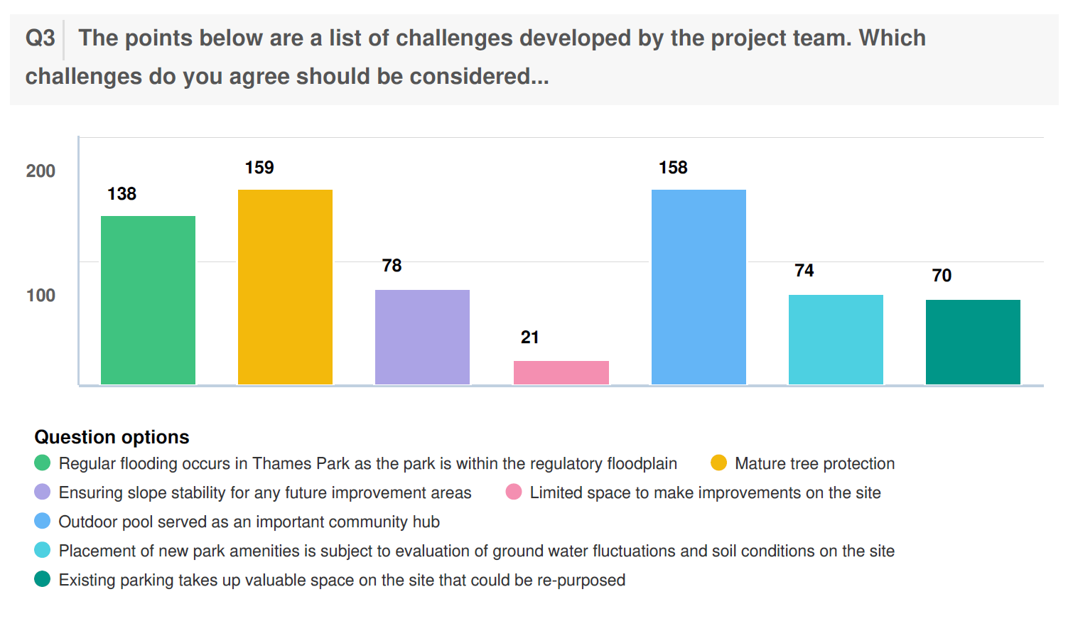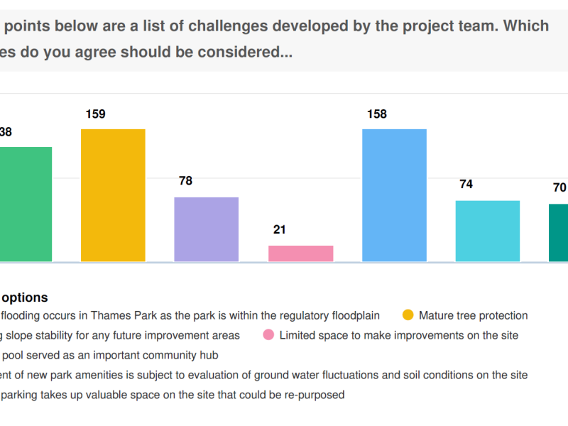The City of London is engaging with Thames Park user groups and other key audiences on the future of the park. In advance of formal engagement, we accepted feedback on the new amenities the community would like to see at the park, as well as the preferred location and design for a new spray pad in the area. Later in Spring 2024, we began a new feedback form to identify opportunities and challenges on the existing site and collect comments from the community.