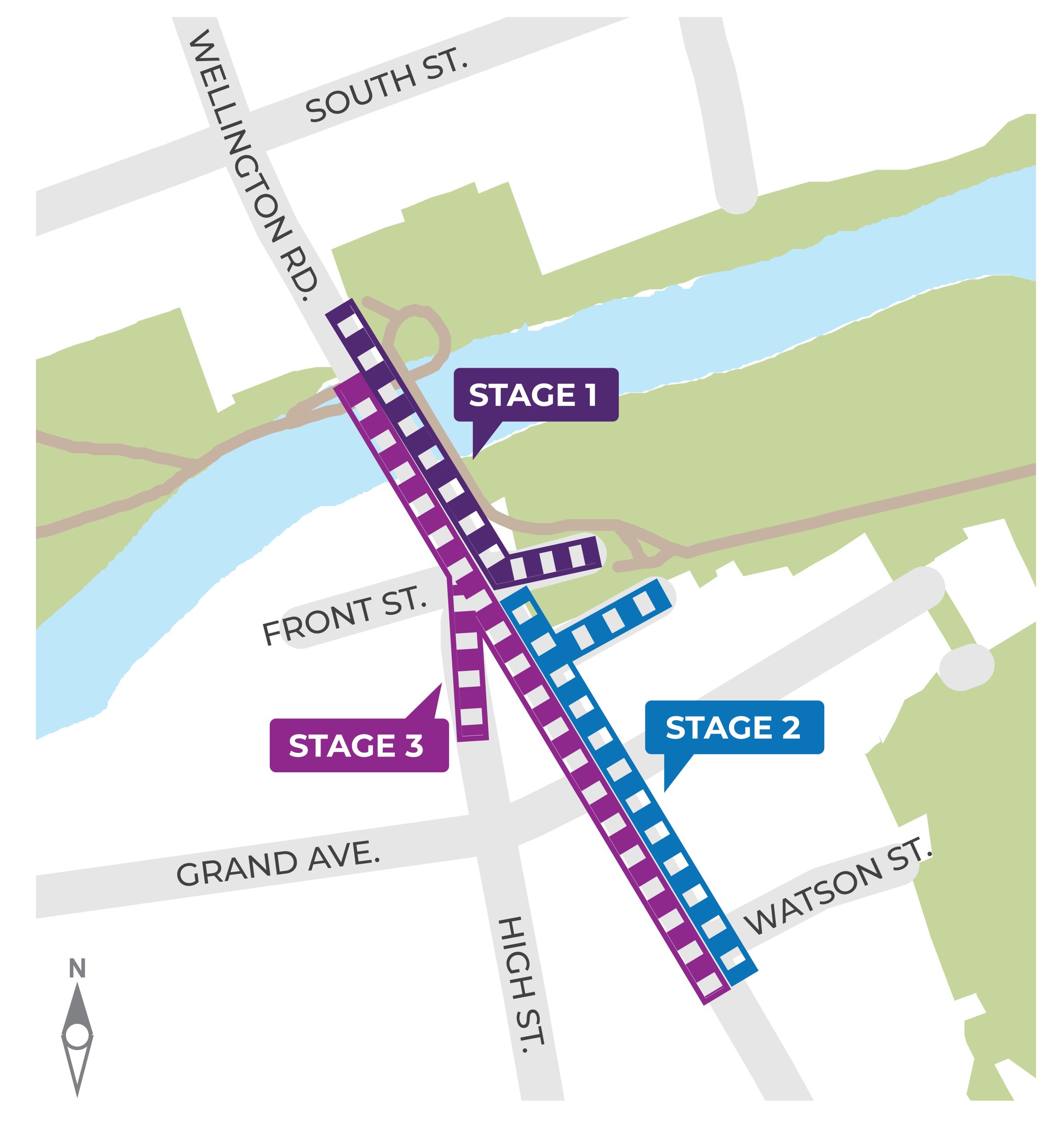 - This stage also includes improvements at the Watson Park parking lot on Front Street and along Grand Avenue East.
