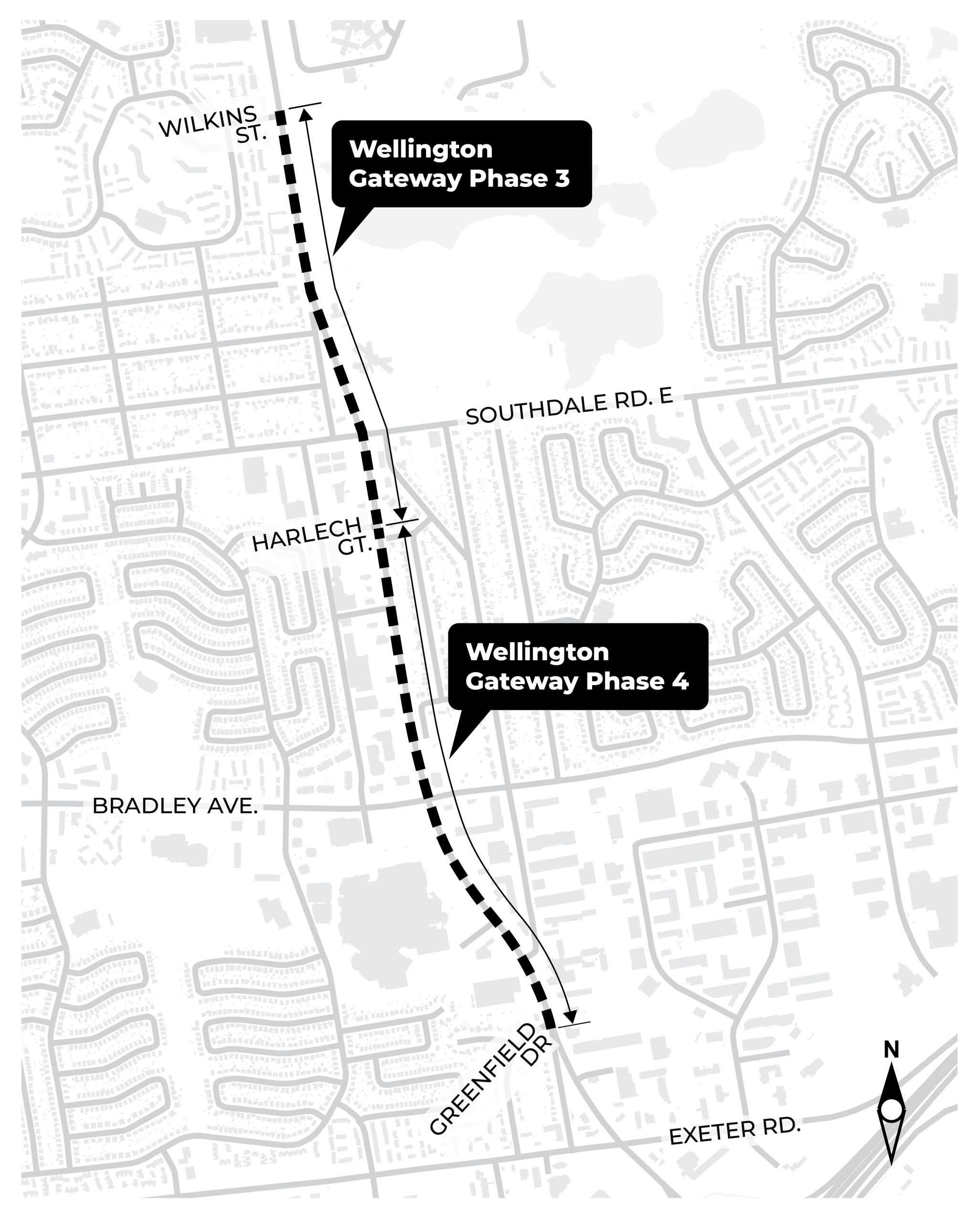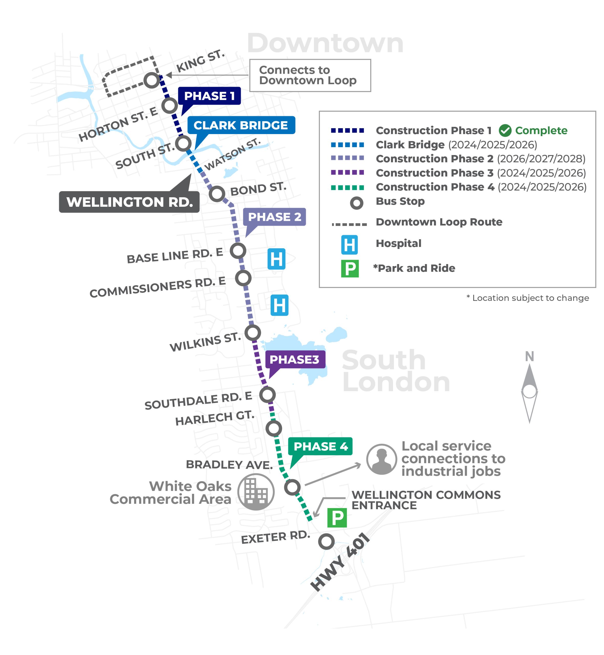 Phase 2 (2026–2028): Phase 2, running from Wellington to Southdale, will begin in 2026. This segment will connect the south leg of the project and complete the remaining link in the corridor.