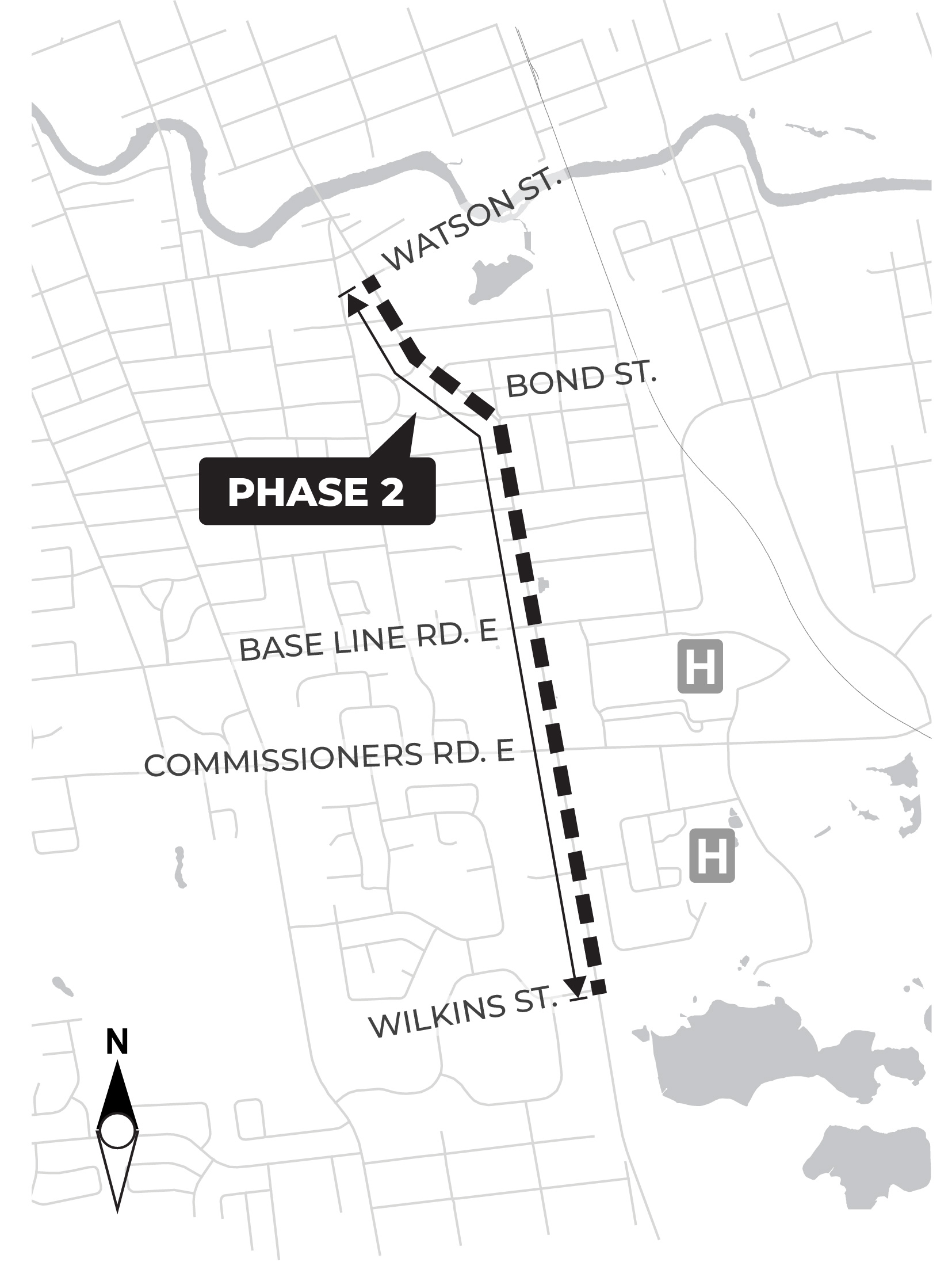- Add new rapid transit stops at Bond Street, Baseline Road East, and Commissioners Road East